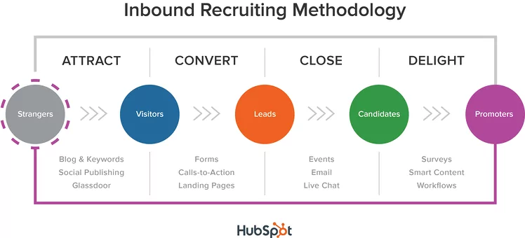 L’objectif de l’inbound recruiting est d’identifier très en amont des candidats potentiels pour constituer un vivier de talents, puis tout au long du parcours (candidat puis salarié) d’augmenter leur engagement vis-à-vis de la marque employeur.